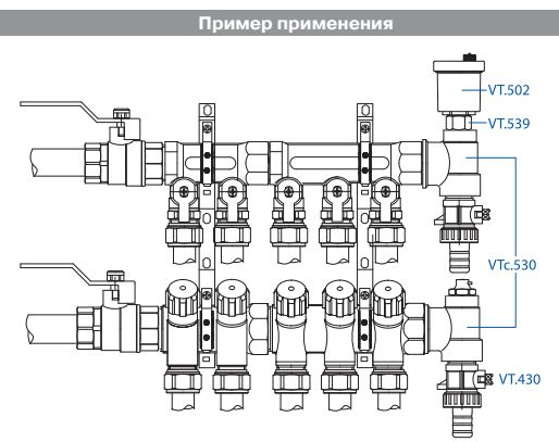 Данный тройник обеспечивает присоединение к распределительному коллектору воздухоотводчика и дренажного крана или других элементов – термометра, манометра, выносного датчика термостата, соединительной трубки и т.д. Изготовлен из качественной сантехнической латуни марки CW617N (европейский стандарт ЕN 12165). Материал уплотнительного кольца – синтетический каучук EPDM. Неиспользуемое отверстие закрывается резьбовой пробкой. Рабочая температура – до 110 °С, давление – до 16 бар. Применяется в коллекторных узлах водяного теплого пола.