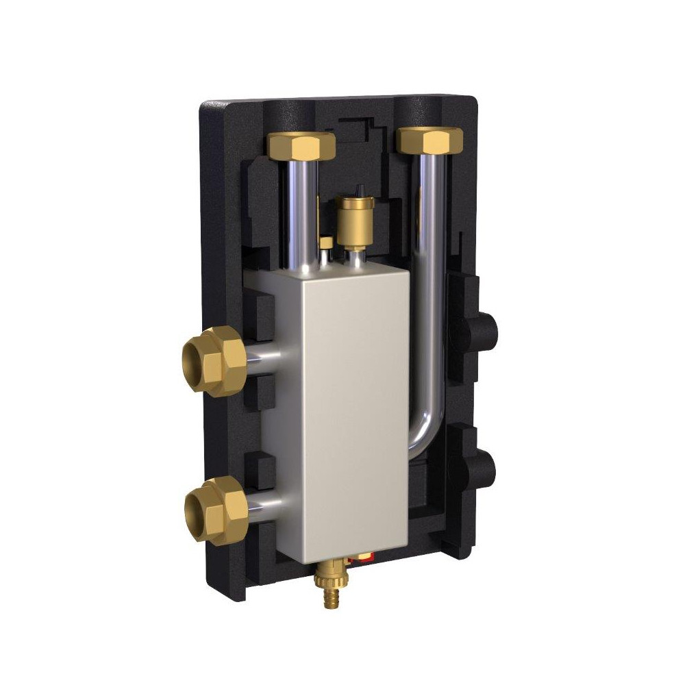 Гидравлическая стрелка DN25 из нержавеющей стали AISI 304 для котельных тепловой мощностью до 60 кВт. Предназначена для предотвращения воздействия насосов друг на друга. Позволяет четко организовать работу многокотельных установок, обеспечивая высокий КПД оборудования, помогает конденсационным котлам выходить на максимальный коэффициент производительности и защищает чугунные котлы от перепада температур. Дополнительные функции: сепарация воздуха, сепарация шлама, опционально – магнитные уловители металлических частиц. Горизонтальное и вертикальное межосевое расстояние – 125 мм.