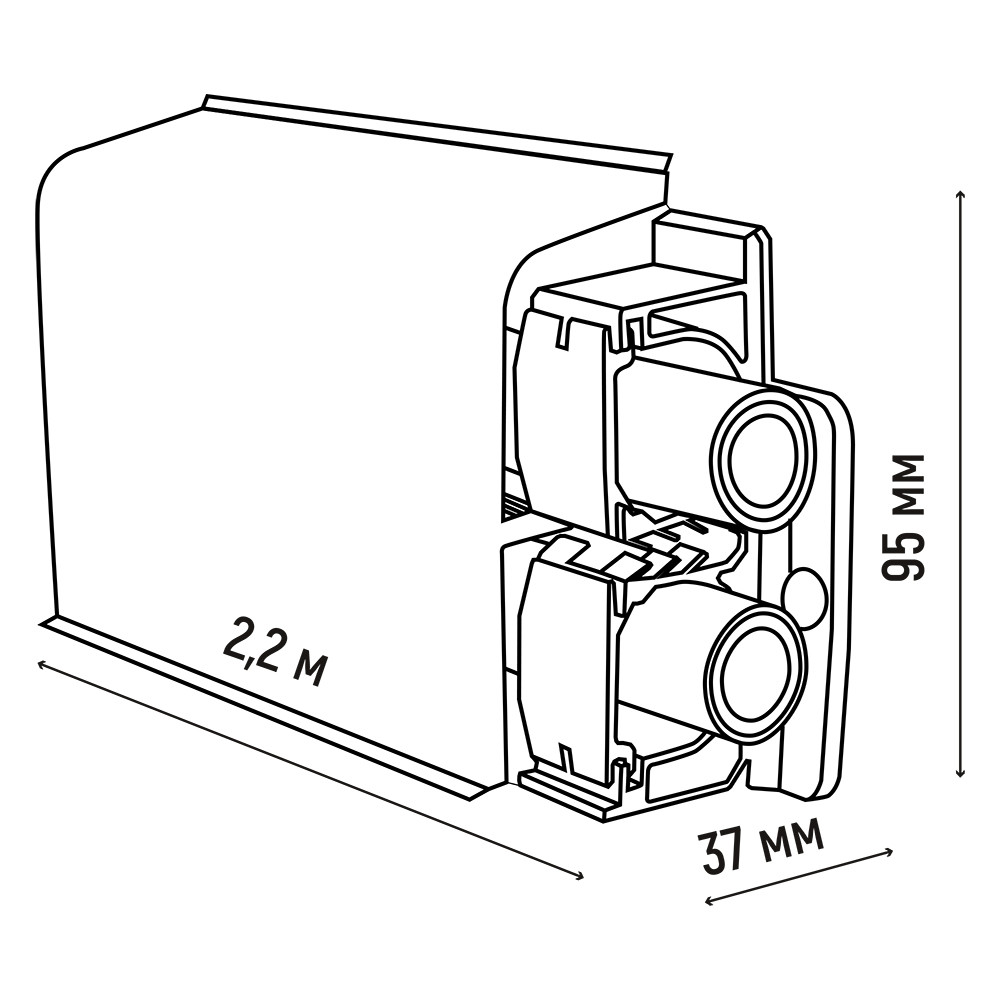 Размеры плинтуса (длина x ширина x высота): 2200 x 37 x 95 мм.