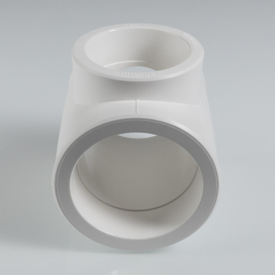 Тройник переходной PPR 110х90х110 отечественной торговой марки Lammin предназначен для соединения методом раструбной сварки трех однослойных или армированных полипропиленовых труб диаметром 110, 90 и 110 мм.