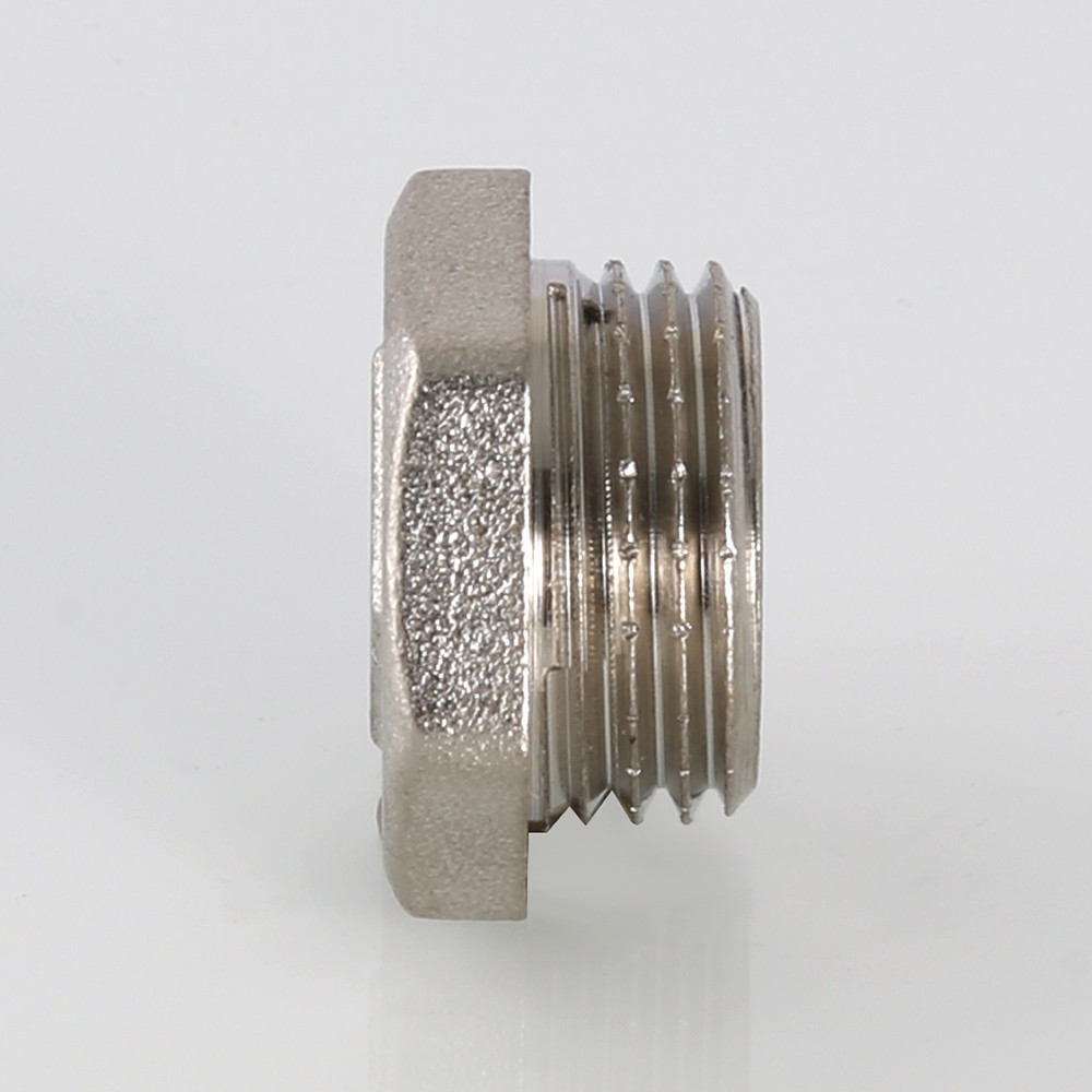 Латунная никелированная трубопроводная пробка с шестигранной головкой. Имеет наружную трубную цилиндрическую резьбу по ГОСТу 6357 (ISO 228, EN 10226).
