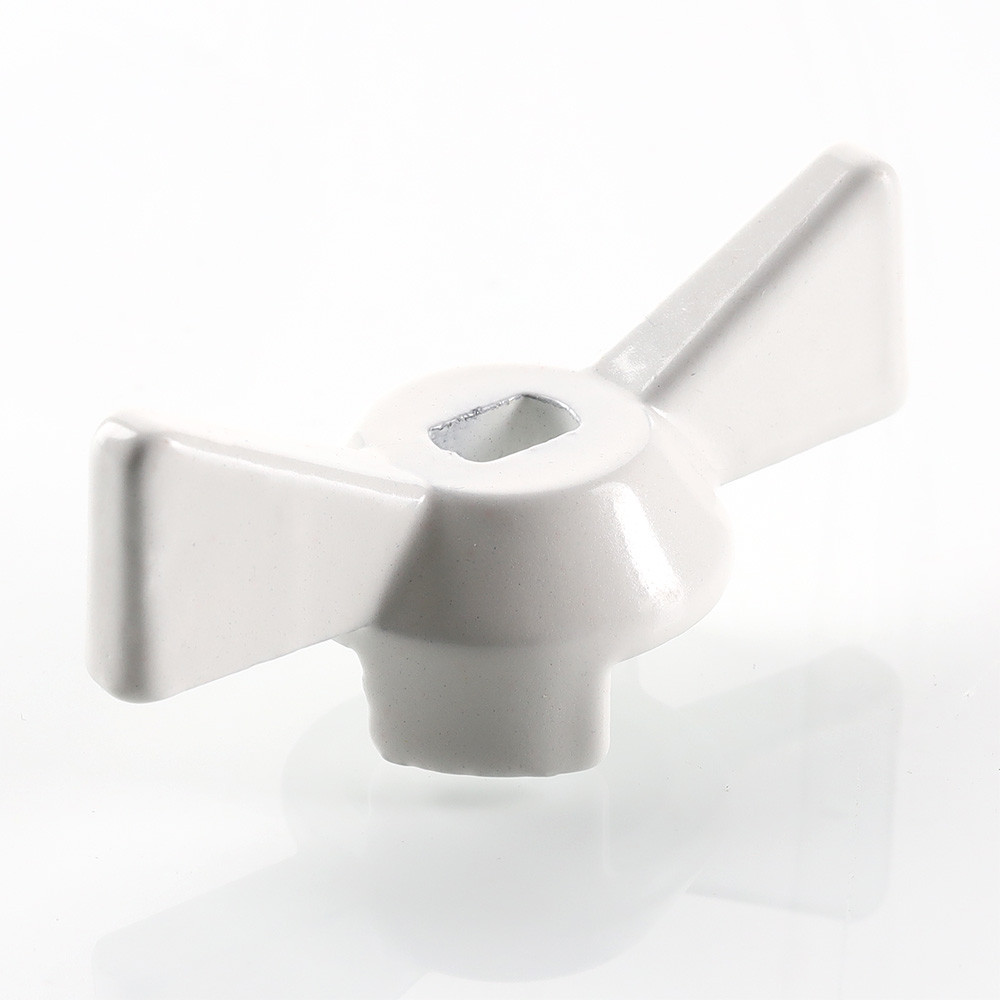 Ручка-бабочка белая предназначена для использования в качестве запасной детали в случае утери или при необходимости замены аналогичной штатной детали шаровых кранов серий VALTEC BASE.