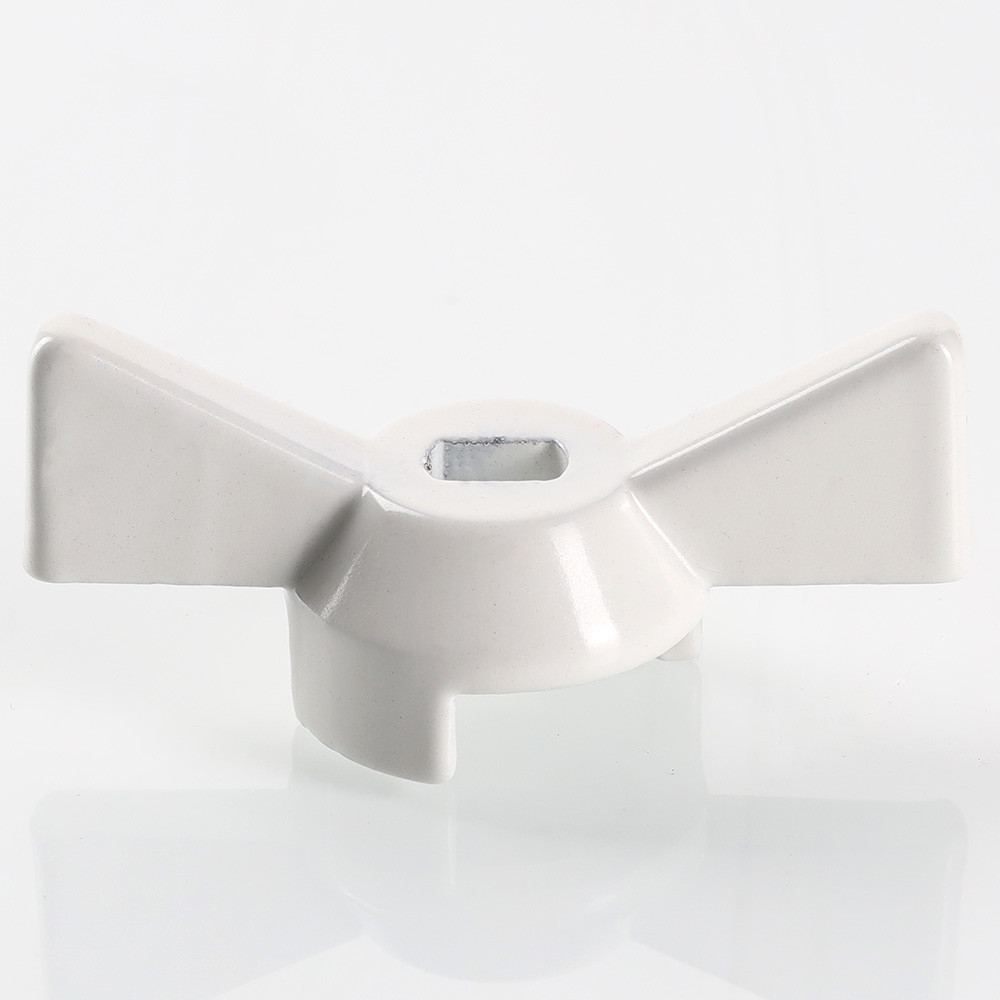 Ручка типа «бабочка» для шарового крана. Выполнена из алюминиевого сплава (силумин). Окрашена эпоксидной краской в белый цвет.