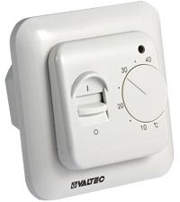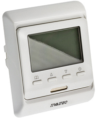 1) Термостат VT.AC601 (рис. 7), работающий от встроенного датчика температуры окружающего воздуха. При снижении температуры воздуха в помещении термостат подает питание на привод, который открывает клапан.