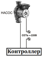 Встроенная функция ограничения температуры в контуре теплого пола позволяет отказаться от использования внешнего предохранительного термостата. В этом случае питание насоса подается через контроллер (рис. 13).