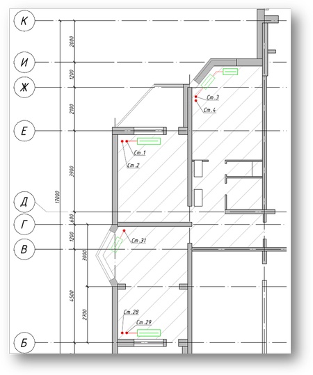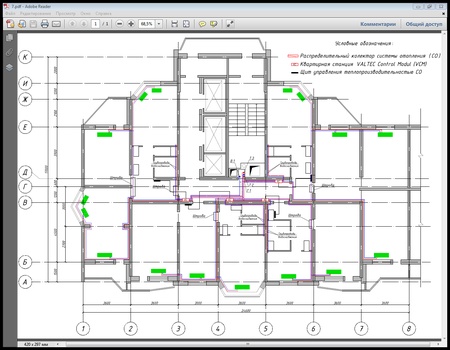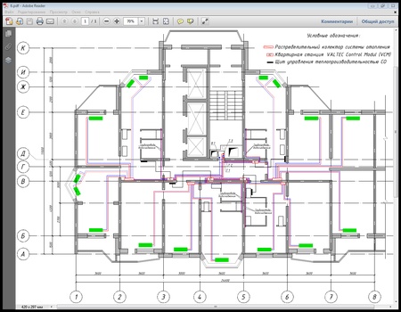 Рис. 4. Частичный план системы отопления жилого многоквартирного здания