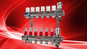 При организации водяного теплого пола коллекторные блоки VTc 594 и VTc 596 легко дополнить насосно-смесительным узлом и автоматическим байпасом VALTEC.