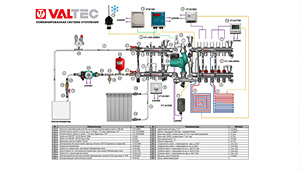 обновленной схемой комбинированного отопления VALTEC. Она разработана для загородного дома или любого другого объекта с автономным источником тепла и предусматривает совместное использование традиционных радиаторов и напольного отопления. В новой версии пособия задействованы и отображены комплектующие из актуального ассортимента VALTEC, включая новинки 2012 года, детализированы особенности подключения управляющей автоматики. Это хорошее подспорье как для специалистов, так и для рядовых потребителей – при подборе вариантов отопления.
