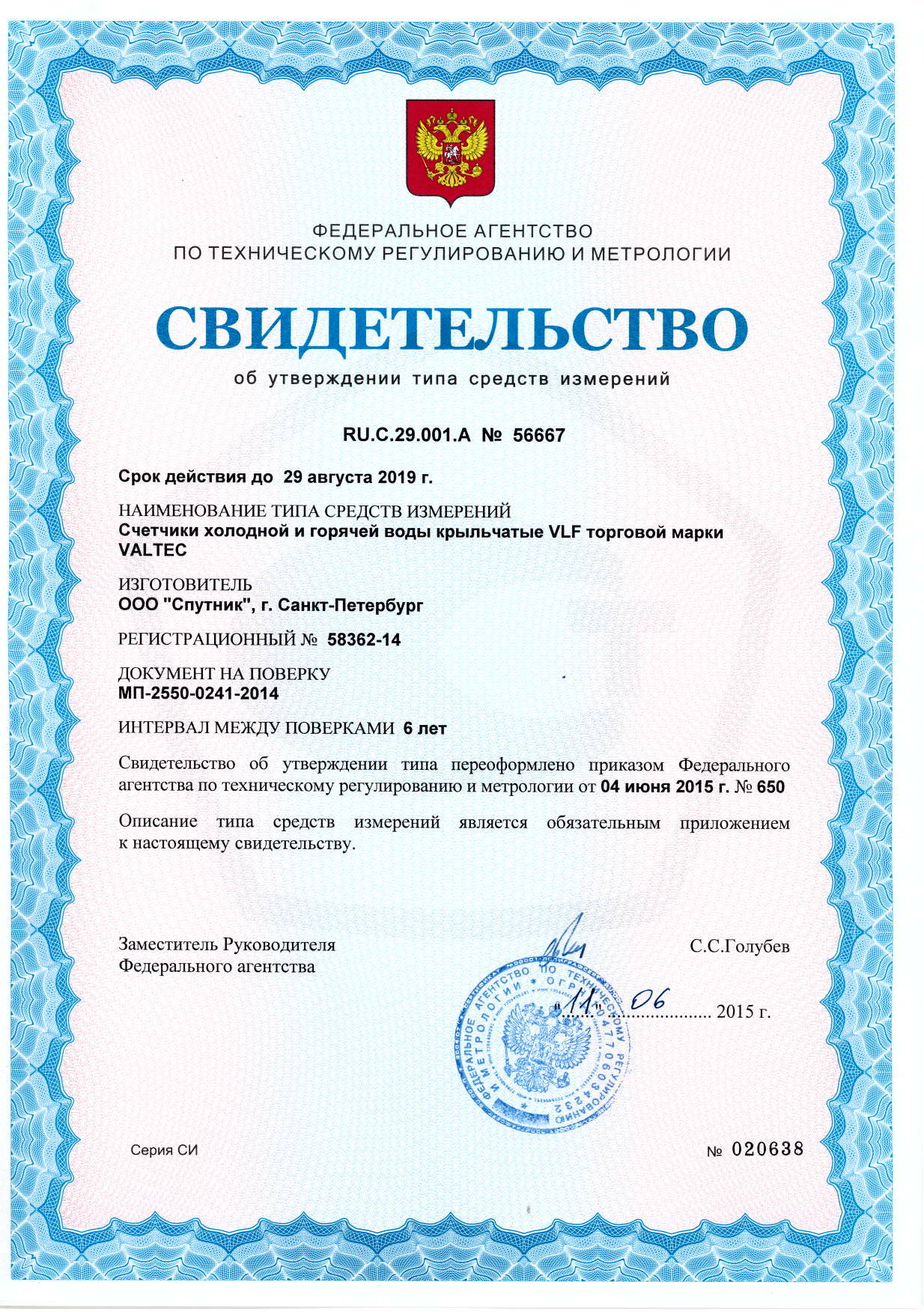 Соответствующее свидетельство выдано Федеральным агентством по техническому регулированию и метрологии.
