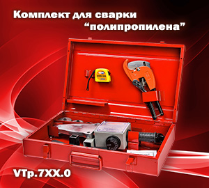 Для монтажа полипропиленовых труб торговая марка VALTEC включила в свой ассортимент комплекты оборудования для раструбной сварки. Каждый такой комплект включает в себя сварочный аппарат мощностью 1500 или 2000 Вт – для работы с трубами диаметром 16–40 и 40–160 мм, соответственно. Мощность «сварочников» регулируется двухступенчато, а температура нагрева – в диапазоне 0–300 ºC. Аппараты комплектуются набором сменных нагревательных насадок, ключами для их крепления, ножницами для резки труб, 3-метровой рулеткой. Весь инструмент удобно размещен в металлическом ящике.