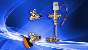 Насосно-смесительный узел DUALMIX состоит из насосного и смесительного модулей, между которыми монтируются прямой и обратный коллекторы (или коллекторный блок с межцентровым расстоянием 200 мм) контура теплого пола. Приготовление теплоносителя с нужной температурой производится смешением жидкости из линии подачи системы отопления и «обратки» вторичного контура. Для этого используется трехходовой клапан. Заводское исполнение узла предусматривает, что управление клапаном осуществляет термостатическая головка с выносным погружным датчиком. Но вместо нее можно установить сервопривод, управляемый контроллером или иным автоматическим устройством. Кроме того, узел включает в себя перепускной байпас; балансировочный клапан; предохранительный термостат, который отключает циркуляционный насос при превышении заданной температуры в контуре теплого пола; встроенные шаровые краны; ручной воздухоотводчик и погружной термометр. Циркуляционный насос приобретается отдельно.