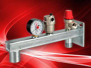 Еще одной декабрьской новинкой VALTEC стала группа безопасности расширительного бака VT.495. Она обеспечивает защиту закрытой системы отопления от превышения допустимого давления теплоносителя и завоздушивания, визуальный контроль давления в системе, а также крепление мембранного бака емкостью до 50 л. Новинка представляет собой полую стальную консоль с установленными на ней автоматическим воздухоотводчиком, предохранительным клапаном и манометром. Консоль оснащена двумя патрубками – для присоединения к системе отопления (наружная резьба) и подключения мембранного бака (внутренняя резьба), а также пластиной для крепления группы к стене.