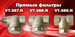 Фильтры грубой очистки воды прямого типа, могут устанавливаться в горизонтальном и вертикальном положении. Корпус и пробка новых фильтров VALTEC выполнены из латуни марки CW 617N (европейский стандарт EN 12165), никелированы. Между ними имеется прокладка из эластомера NBR. Пробка оснащена отверстием для пломбировки. Размер ячеек сетки фильтрующего элемента – 400 мкм, максимальное рабочее давление – 16 бар. Максимальная рабочая температура фильтруемой среды – 150 °C.