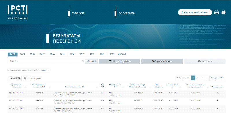 - Добросовестность поверочной организации можно проверить, произведя поиск результатов ее деятельности в информационной системе ФГИС АРШИН.