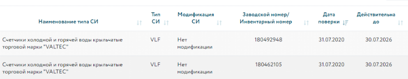 - Результаты поверки всех приборов учета компания VALTEC направляет в государственной реестр сразу после поверки, однако следует иметь ввиду, что срок обновления данных в реестре может достигать двух месяцев.