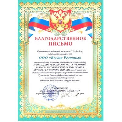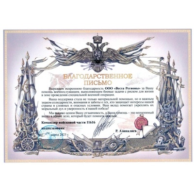 На протяжении уже долгого времени мы регулярно отправляем гуманитарные грузы, поддерживаем военнослужащих и наших соотечественников, оказавшихся в зоне боевых действий. Работаем совместно с волонтерами и другими организациями, чтобы помощь была адресной и своевременной. Нам приятно осознавать что наши усилия полезны, когда мы получаем искренние слова благодарности от бойцов и их командования.