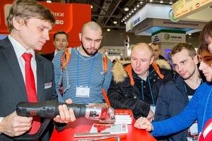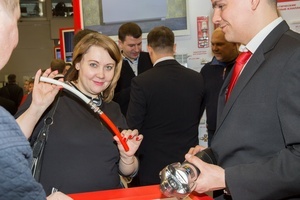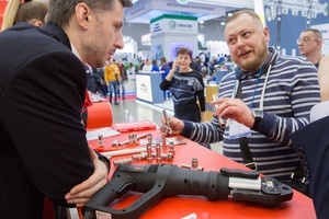 Нововведением же нашего стенда стала стойка, где каждый желающий мог попробовать себя в монтаже фитингов металлопластиковых и нержавеющих стальных систем с использованием электрического пресс-инструмента. Все дни выставки монтажная зона нашего стенда была особенно многолюдной.
