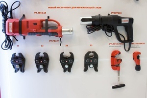 Среди уже введенных в ассортимент новинок большим интересом гостей выставки пользовались: Wi-Fi устройство сбора и передачи данных VT.USPD, насос для повышения давления с датчиком протока VRS.129G, насос циркуляционный для ГВС с режимом частотного регулирования VRS.121EM, электрический пресс-инструмент VT.1550 и VT.EFP203, ручные труборезы VTi.701, VTi.735, фитинг из нержавеющей стали VTi.955.