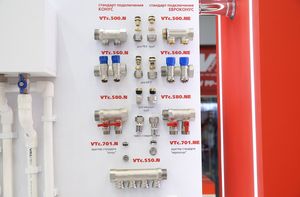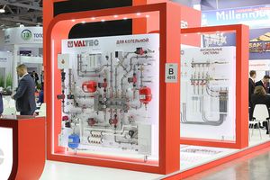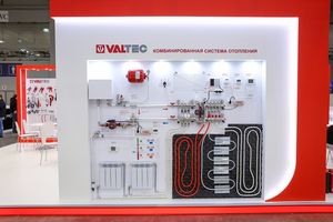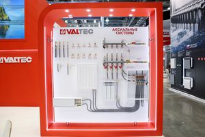 Той же категории посетителей был адресован стенд «Этажные узлы», знакомивший специалистов с вариантами исполнения и подключения этажных узлов и квартирных станций VALTEC, со способами реализации регулирования систем теплоснабжения в стояковой системе с горизонтальной этажной разводкой и учёта потребляемых тепла и воды. Представленные на стенде узлы выпускаются на территории РФ, проходят испытания на герметичность и поставляются заказчикам в собранном виде.