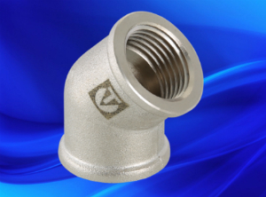 Угольник 45° VTr.091 изготовлен горячим прессованием из латуни марки CW617N с нанесением никелевого покрытия, имеет муфтовые патрубки с трубной резьбой по ГОСТу 6357.